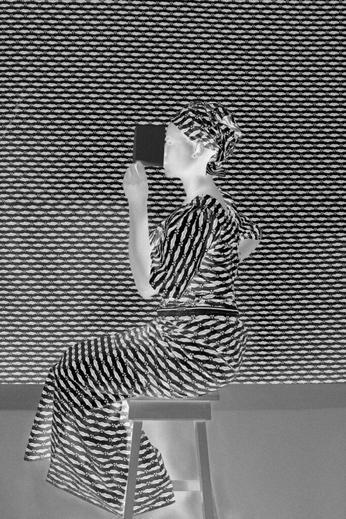 Evocando il concetto di camouflage, ovvero la mimetizzazione, Rosi si affida alla scala dei neri e dei grigi, adoperandola in chiave acutamente metaforica. Quel tanto che nella composizione fotografica appare a tratti celato dall’intercorrere di una texture pronta ad inghiottire armonicamente persino la figura, corrisponde alla gran quantità di informazioni e frammenti di vita, che di ogni singola donna ritratta ai più resterà quasi del tutto sconosciuto. In tal maniera Rosi ragiona la portata di sprazzi di esistenza, che da sempre hanno visto e vedono le donne lottare per ritagliarsi il proprio spazio nel mondo. «Se tu esci, io esco» – recitava una dei tanti messaggi annoverati come una firma, tra i tessuti personalizzati e commercializzati dalle Nana Benz al mercato centrale di Lomé. Con la medesima e dissacrante ironia, l’artista Milli Gandini (Varese, 1941-2017) del Gruppo Femminista Immagine Varese, negli anni Settanta, impresse nella sua creazione un grido libertario e carico di euforia, che ancora tuona: «La mamma è uscita!»