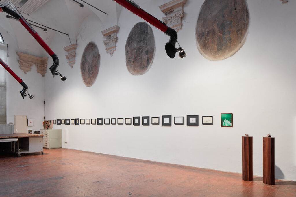 Leonardo Regano: Nel concepire Perché mi guardi così? siamo partiti, come consuetudine nei progetti presentati al LabOratorio degli Angeli, da un confronto profondo con il luogo, inteso non solo come spazio storico e architettonico, l’ex Oratorio di Santa Maria degli Angeli, ma come organismo carico di vita, di memoria e di tensioni simboliche, in riferimento alla sua attuale destinazione d’uso come laboratorio di restauro diretto da Camilla Roversi-Monaco in società con Andrea Del Bianco. L’invito a Francesco Gennari nasce dalla capacità di far dialogare nella sua ricerca una dimensione apparentemente intima con contesti complessi e stratificati. La sua poetica dell’autoritratto non è autobiografica in senso stretto, ma funziona come dispositivo conoscitivo: il sé diventa una soglia attraverso cui misurare il tempo, lo spazio e lo sguardo dell’altro. In un luogo deputato al restauro, questa riflessione si carica di ulteriori risonanze, perché il gesto del prendersi cura e del riportare alla luce trova un’analogia con il lavoro di scavo interiore che attraversa la pratica di Gennari.