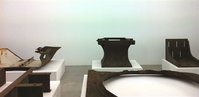 Lara Favaretto, parti del cumulo esterno, installate su dei piedistalli all’interno