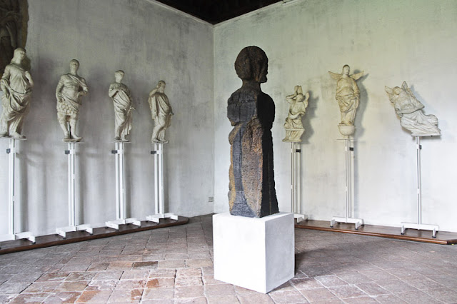 Fino al 22 luglio, nella prima tappa espositiva, Huma Bhabha e Francesco Carone si confrontano con gli spazi suggestivi del Luogo Pio Colleoni, dimora medioevale di Bartolomeo Colleoni e ancora oggi archivio dell’Istituto e luogo di conservazione di opere d’arte, oggetti e documenti. La compresenza di Bhabha e Carone in contemporary locus 1 è testimonianza contemporanea di culture e pratiche artistiche differenti, unite da un singolare dialogo con il passato e calate in spazi segreti che si aprono alla inaspettata solarità di un antico orto urbano.