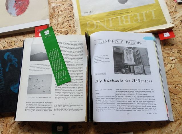 Il prgetto è stato allestito negli spazi antistanti alle fiera. E’ possibile sfogliare una lunga serie di riviste dentro le quale, con un segnalabri, si possono vedere gli interventi di molti artisti.