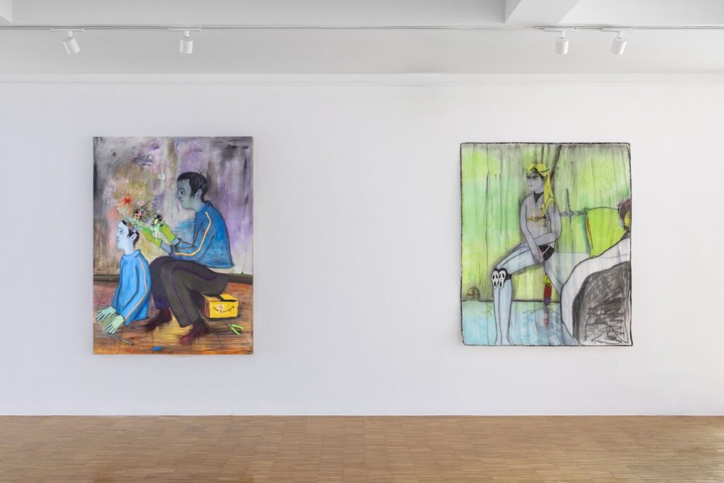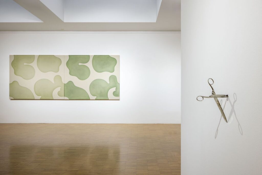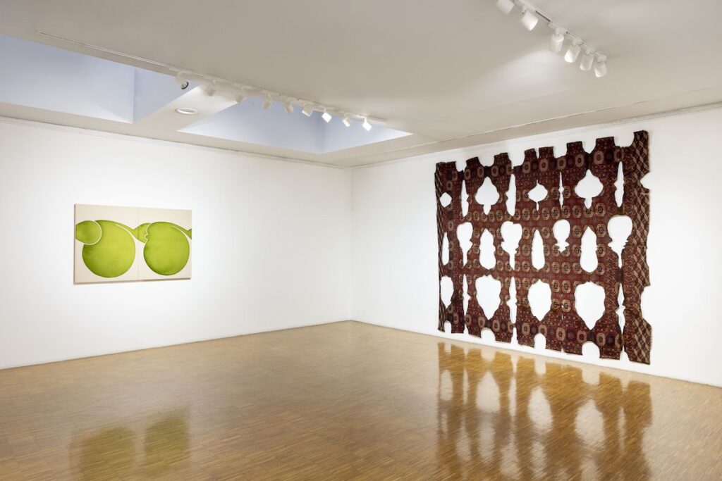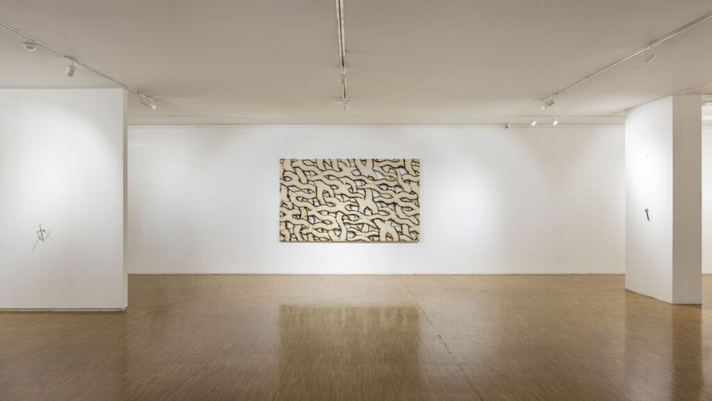 Landon Metz, al contrario, si sposta dalla pittura “tradizionale” per costruire un’architettura visiva atmosferica, con opere che dialogano in un moto perpetuo e forme che si moltiplicano. L’installazione invita lo spettatore a fermarsi, a contemplare, in un silenzio carico di vibrazioni.
