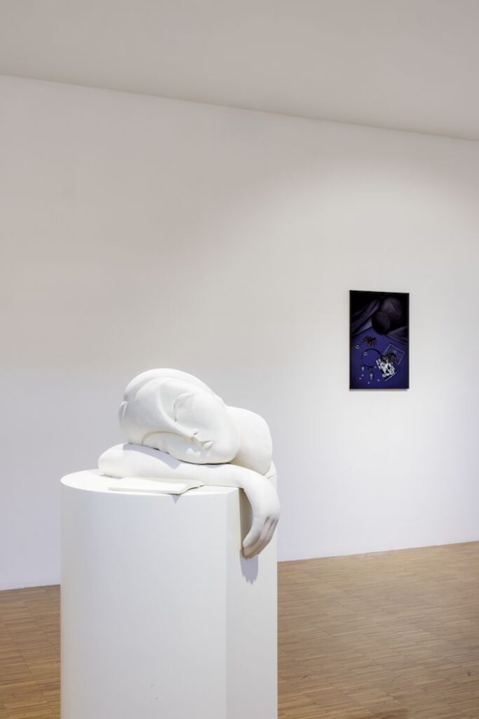Viola Leddi, invece, affronta la figura femminile, l’adolescenza e la salute mentale attraverso media espressivi differenti. Certamente il lavoro più interessante è l’esplorazione della donna attraverso le Pill Boxes, una reinterpretazione di Le signorine di Felice Casorati. Le donne protagoniste del quadro perduto di Casorati vengono identificate da Leddi con un nome da lei scelto, posizionato su un cartiglio di porcellana che decora quattro piccoli portapillole. Leddi fa corrispondere ad ognuna delle donne dipinte da Casorati un disturbo psichico, e posiziona nelle scatole degli psicofarmaci. Leddi propone anche delle tele. Tra queste XY, dove una serie di assi cartesiani viene “interrotta” da mosce con ali luminescenti. Le mosche sono un elemento biologico incontrollabile che creaun contrasto tra ordine e caos.
