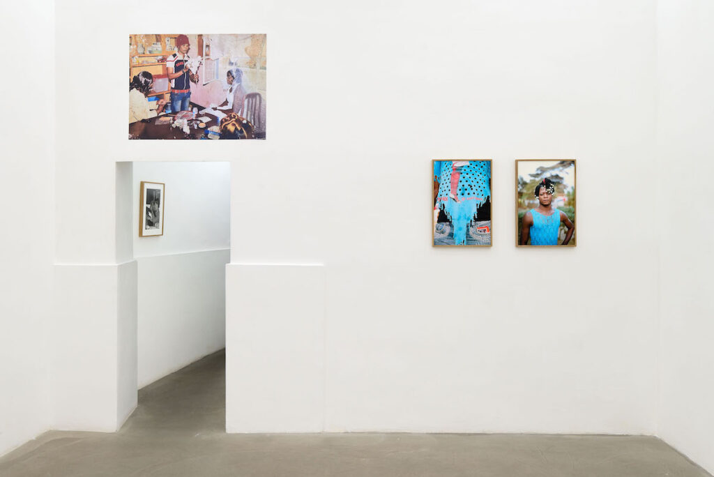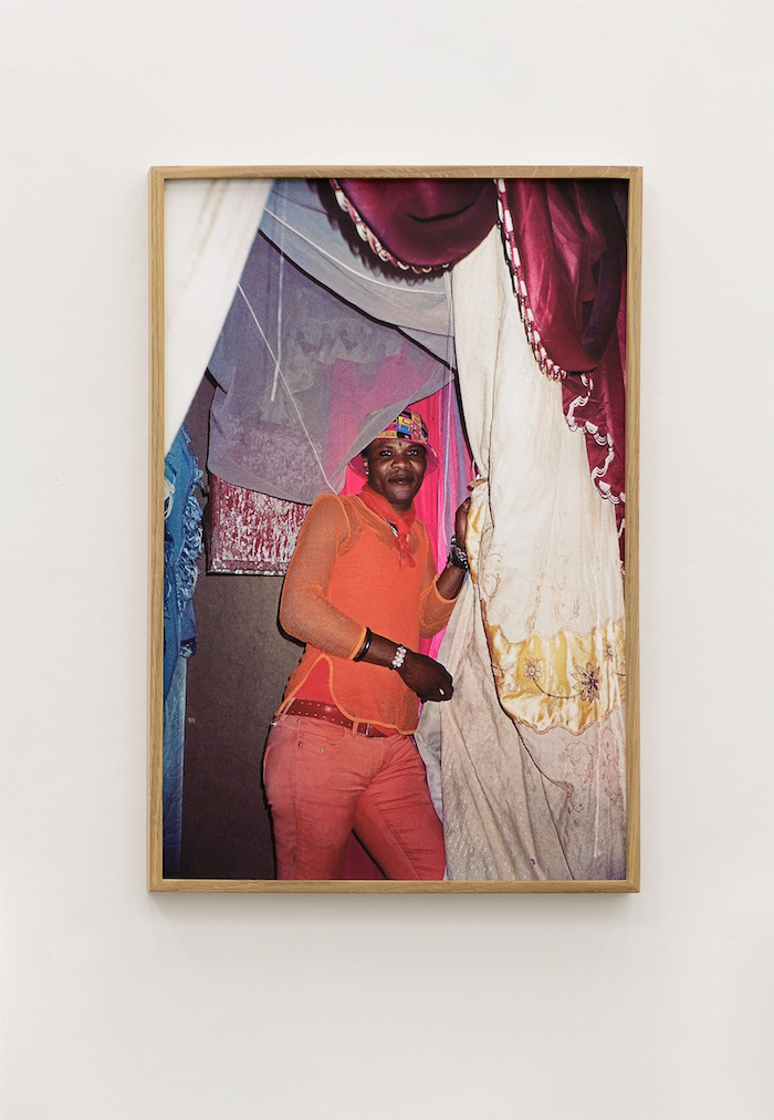 In mostra, come di consueto nelle serie fotografiche più celebri dell’artista – Country Girls (2003-2009), Black Men in Dress (2011) e The Royal House of Allure (2020) – la dominante del bianco e nero è contrappuntata da sequenze cromatiche vivide e sature. Il dispositivo fotografico è liberato da una tensione esclusivamente documentaria e reso portatore di una valenza simbolica che si sostanzia anche attraverso il colore: linea e colore si integrano nella composizione, assumendo una valenza formale e interpretativa. Abiti sgargianti, pose e sguardi vengono restituiti accettando persino la possibilità di una parziale sottrazione del soggetto alla vista. In queste emergenze cromatiche – così come negli interni vuoti e negli scatti spontanei – si inscrive l’intimità dello scambio tra artista e soggetti.