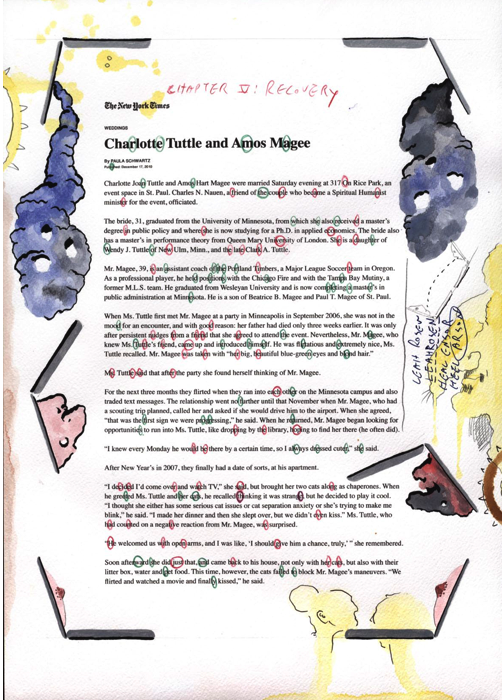 Quest’ultima opera consiste in 16 pagine provenienti da fonti diverse – da articoli del New York Time alla pubblicità di una compagnia di jet privata alle pagine di un libro di favole – in cui l’artista ha cerchiato delle lettere. Con un pò di pazienza, il lettore riesce a decifrare un racconto riguardante un gruppo di art celebrities (tra cui l’artista italiano Maurizio Cattelan) che volano in Congo, rimangono coinvolte in un incidente aereo, fino a quando il corpo dello stesso Cattelan viene ritrovato straziato e smembrato nella giungla.