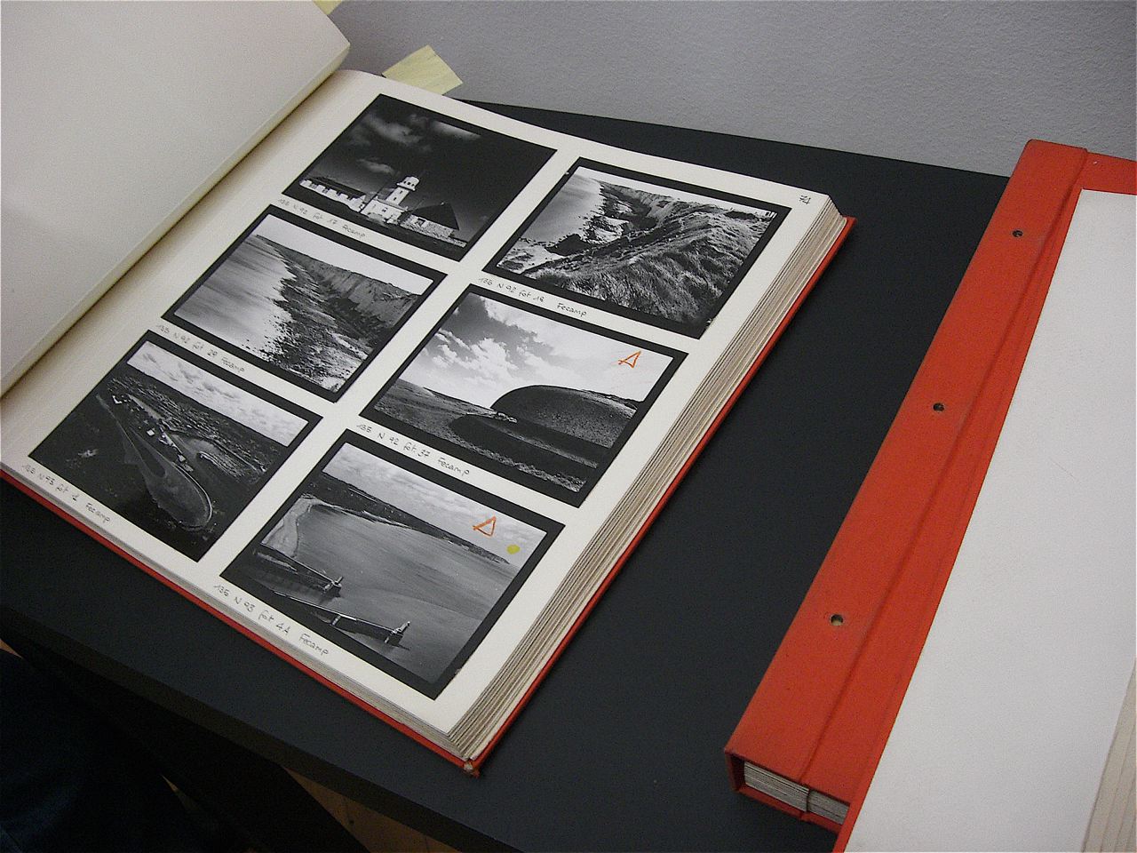 Mi raccontava che, nei decenni, quando cerca delle foto da ristampare per progetti vari, ne scopre lui stesso di ‘nuove’. In effetti, è stupefacente quanti pochi errori o fotografie sbagliate (per un occhio ingenuo come il mio) ci siano in questi raccoglitori. Credetemi, ci sono delle foto bellissime. Riporto in toto un appunto che ho chiesto ad una visitatrice all’opening: “È stato bello, alla sua mostra, poter sbirciare nei suoi album di lavoro. I meticolosi rilievi dei luoghi da fotografare in lastra in un secondo tempo, gli appunti personali, i segni, mostrano una mole smisurata di scatti (tutti buoni, viene da dire) da selezionare. È in questa selezione finissima ed accurata che sta la grandissima parte del lavoro del fotografo, costretto a eliminare costantemente, più che aggiungere. Onore al merito, maestro! Bello anche sentirlo notare, guardando le sue stampe ‘vintage’, come i toni delle stampe di allora siano più cupi e drammatici rispetto agli scatti contemporanei. La vecchia baritata si è anche inbarcata un pochino, e a noi nostalgici piace tanto…”