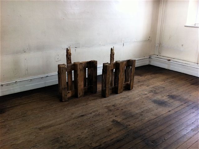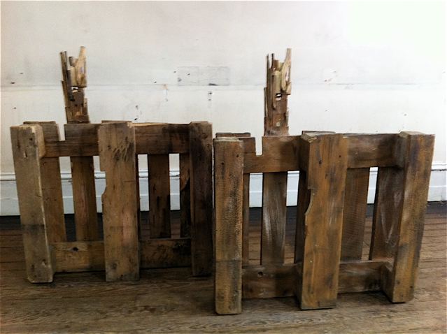 Cambiare la propria mente è facile se cambi prima l’altezza, 2011,   Pallet di legno, vinavil, bronzo colorato Courtesy Vedovamazzei, Umberto Di Marino Arte Contemporanea