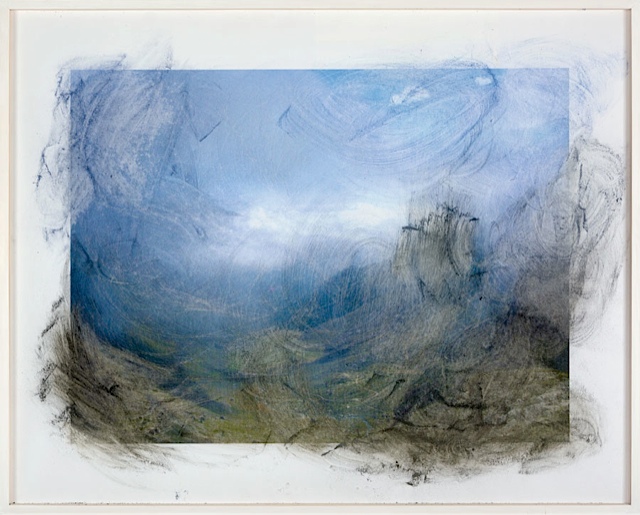Il terzo gruppo (Paesaggio alle spalle) raccoglie lavori che ho fatto in montagna: davo le spalle al paesaggio e tenendo una lastra di plexiglas sulle ginocchia incidevo l’immagine che vedevo riflessa.