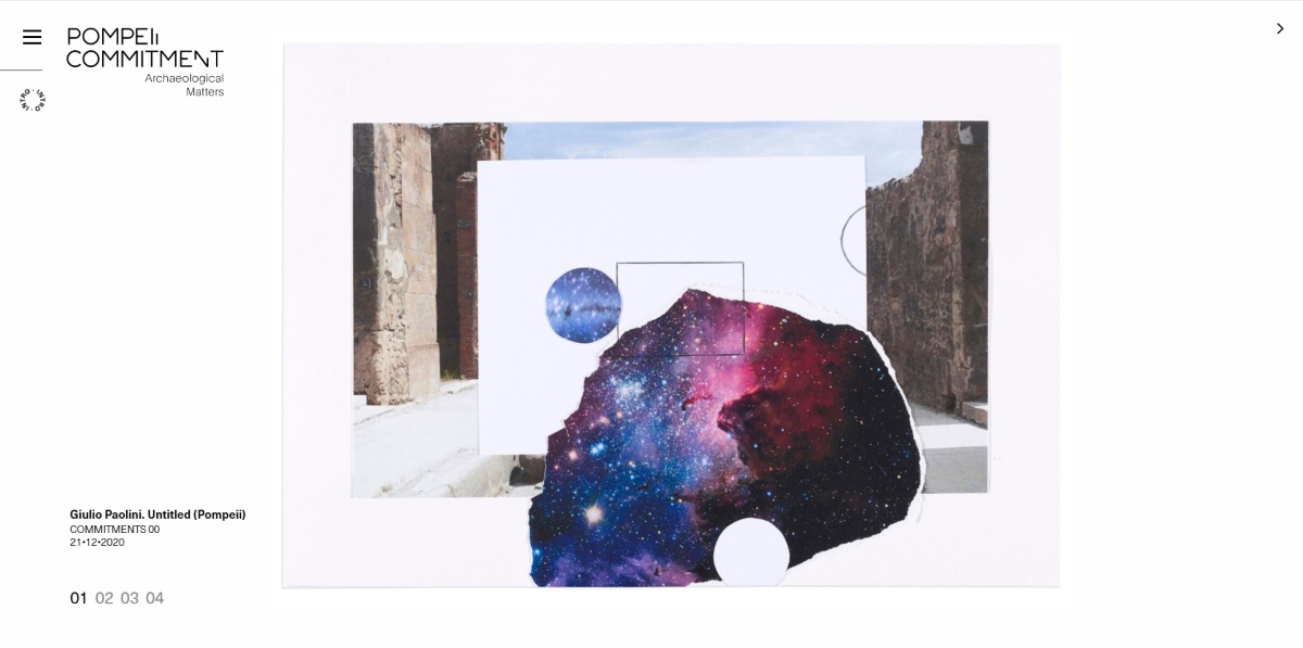 Schermata dal sito pompeiicommitment.org, con l’opera digitale di Giulio Paolini Untitled (Pompeii)