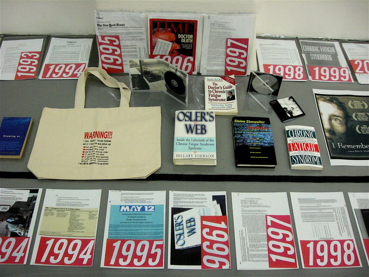 Mostra senza poesia ma con un denso substrato concettuale. Ammirevole la costanza e la follia con cui Simon Denny ha documento la patologia nota con il nome di Sindrome da Stanchezza Cronica o Encefalomelite mialgica. Un modo bizzarro per parlare del sistema dell’arte? Un pretesto per fare della scienza senza coscienza? Un tema metaforico per raccontare la stanchezza esistenziale odierna? Un tema a caso per allestire un pseudo ufficetto-archivio con tante foto/giornali/riviste? E poi, mettiamoci anche una transenna per appoggiarsi e ammirare un paesaggio di follia e chiacchericcio pseudo scientifico…