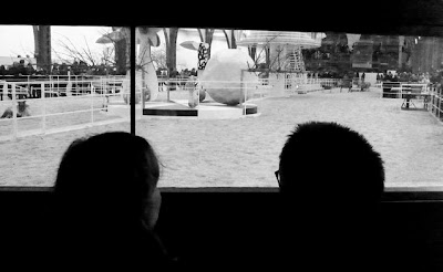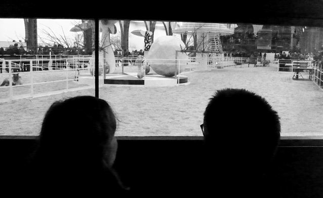 Le renne durante la prima ora sono state molto vivaci (quelle del settore sinistro mi sembravano più attive delle altre) e circolavano tranquille ma prudenti: sempre a una certa distanza dal recinto elettrico e dai visitatori. Nella seconda parte della serata, forse con il venir meno dell’eccitazione, si sono fermate e accovacciate per terra. Per loro fortuna, i canarini sono rimasti un po’ in disparte e mano a mano che la folla invadeva il salone, si sono fatti sempre più silenziosi (o forse è stato il forte vociferare della gente a sovrastare il loro canto). Per quanto riguarda le mosche, le ho viste entrambe girare senza sosta all’interno delle scatole trasparenti, ossessivamente com’è il loro solito (o anche di più?). Chi invece non si è proprio fatto vedere è stato il gruppo dei topolini. Forse perché erano gli unici ad aver la possibilità di sottrarsi alla vista dei visitatori, sono rimasti per tutto il tempo rintanati all’interno delle proprie cuccette.