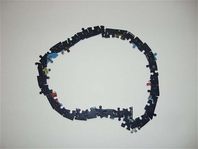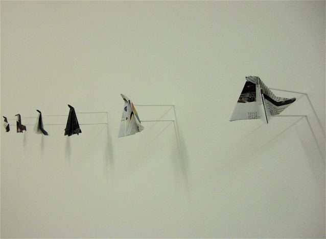 Pianissimo – La mostra di Tobias Collier mi sembrava una stanza per giochi (in senso buono!). L’artista è interessato alla produzione artistica come pratica di ricerca (e fino a qui tutto normale, quasi banale), ma in particolare alla produzione influenzata dalla metodologia descritta dal matematico ungherese Imre Lakatos, ossia lo sviluppo del sistema di cio? che egli chiama “geometria culturale”, il cui elemento centrale è il ‘principio di mediocrità’…