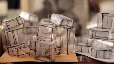 Devo ammettere che di Martino è stata veramente brava a riprendere le caotiche stanze parigine di Yona Friedman. Con un gioco di messe a fuoco e dissolvenze, l’artista indugia con occhio lenticolare tra un delirante coacervo di modellini, plastici, accumuli di scodelle, reti, fili di ferro… Poco lontano la pianta di una città immaginaria fatta di aghi di spillo e crine di cavallo di Christiane Löhr (da vedere raso terra). In un angolo, la videoanimazione di Yona Friedman, ‘La terra spiegata a visitatori extraterresti’: i suoi celebri disegni a fumetti illustrano i temi più importanti che hanno segnato lungo il tempo il suo pensiero e la sua ricerca.