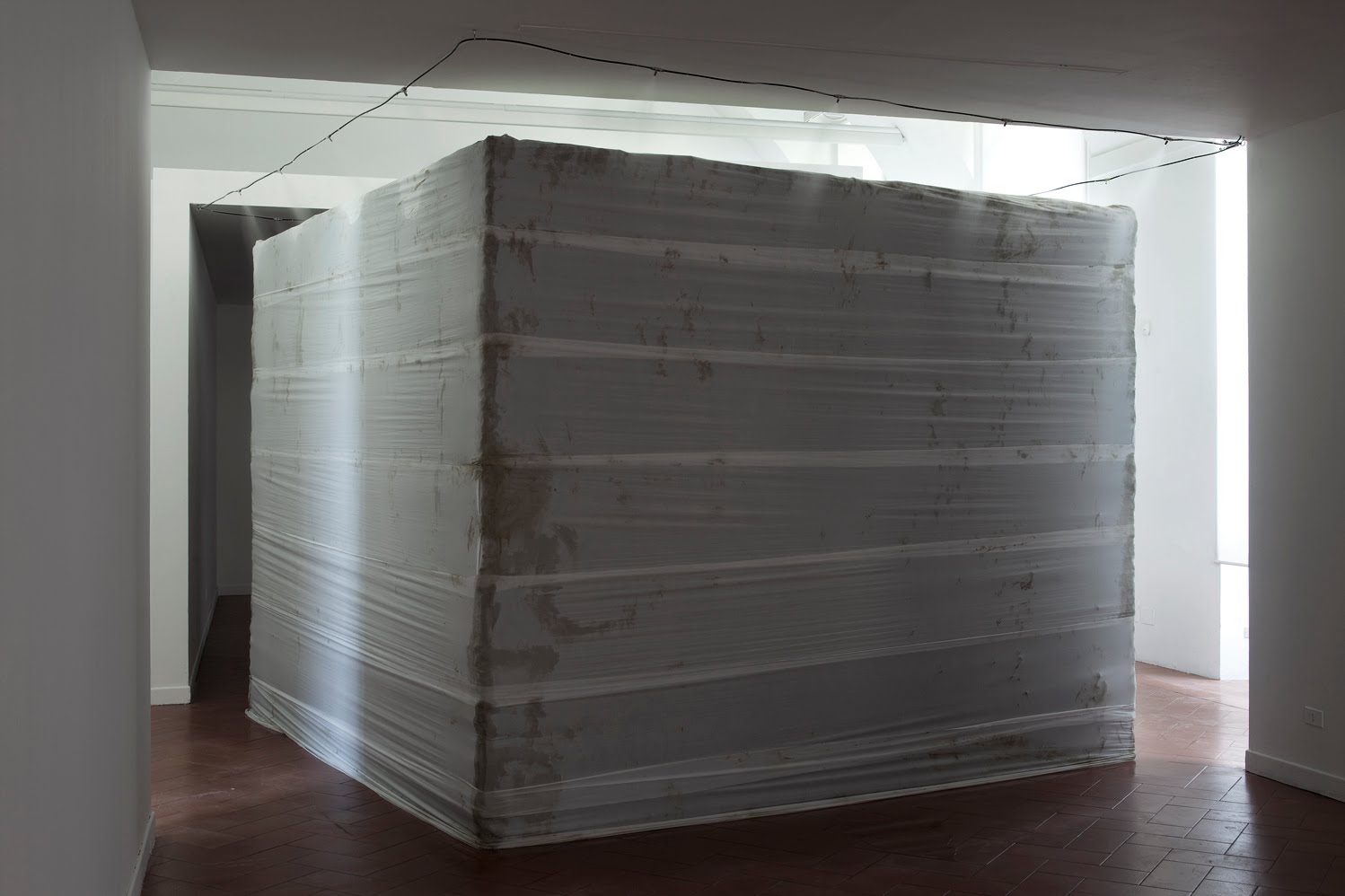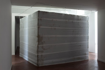 Ho visto un’opera che mi è rimasta impressa. Toccante, emozionante, inquietante anche. Un enorme cubo di creta avvolto in metri di stoffa. Bagnato per non far seccare la creta, il grande cubo sembrava piangente… triste della retorica da cui ha preso forma. Il grande cubo è un semplice monumento anzi, un Monumento Nazionale (titolo dell’opera), un monumento che racchiude tutti i monumenti che possiamo immaginare e pensare. Grazie a Guillaume Leblon, l’artista, e al curatore Alessandro Rabottini.