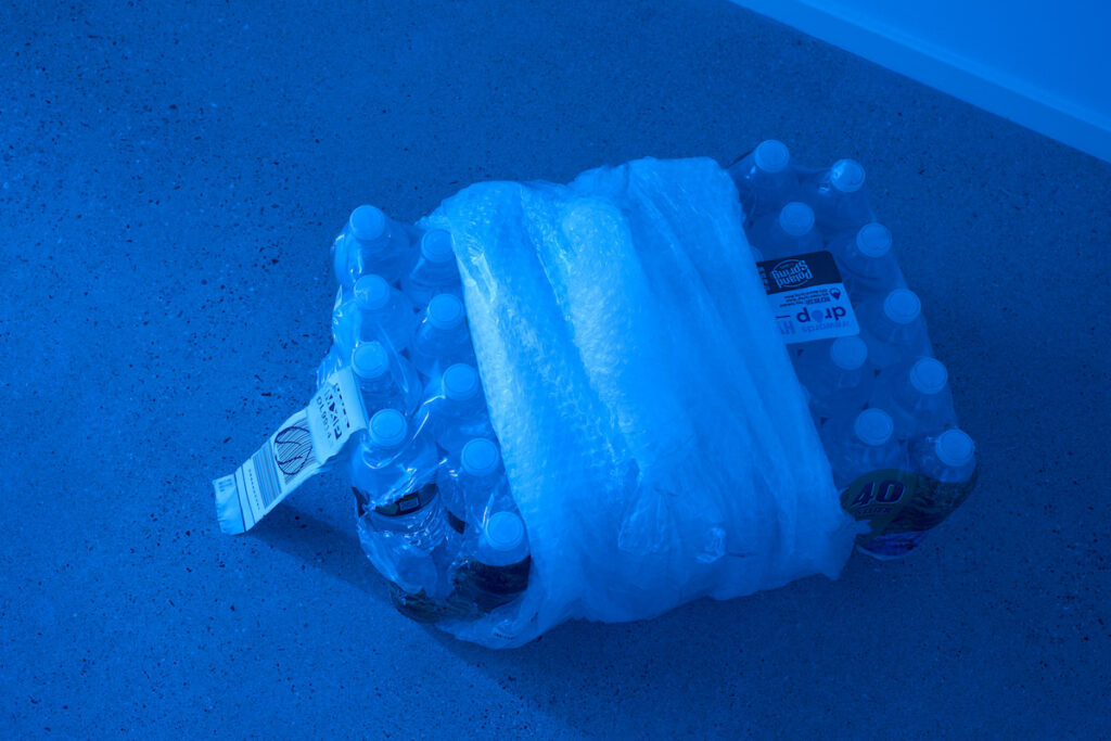 EB: Con esempi concreti, in altre parole, citandomi alcune opere del percorso espositivo, mi racconti come l’artista ha indagato, da una prospettiva queer, i sistemi economici contemporanei, delineando una forma di erotismo che mette in relazione desiderio individuale e meccanismi logistici?