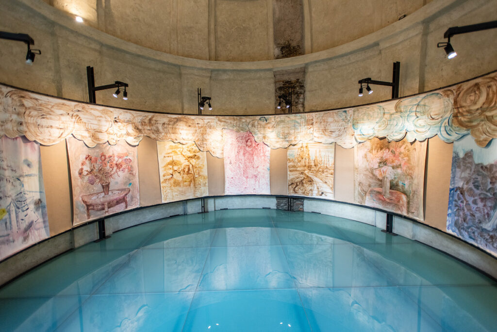 L’opera, dunque, traduce la necessità umana di giungere a un’ascesa purificatrice attraverso la natura, trascendendo i confini materiali. La pittura, liberata dalla forma tradizionale del quadro e della cornice, avvolge i visitatori invitandoli a fondersi con il creato, riscoprendo la propria essenza nella caducità.